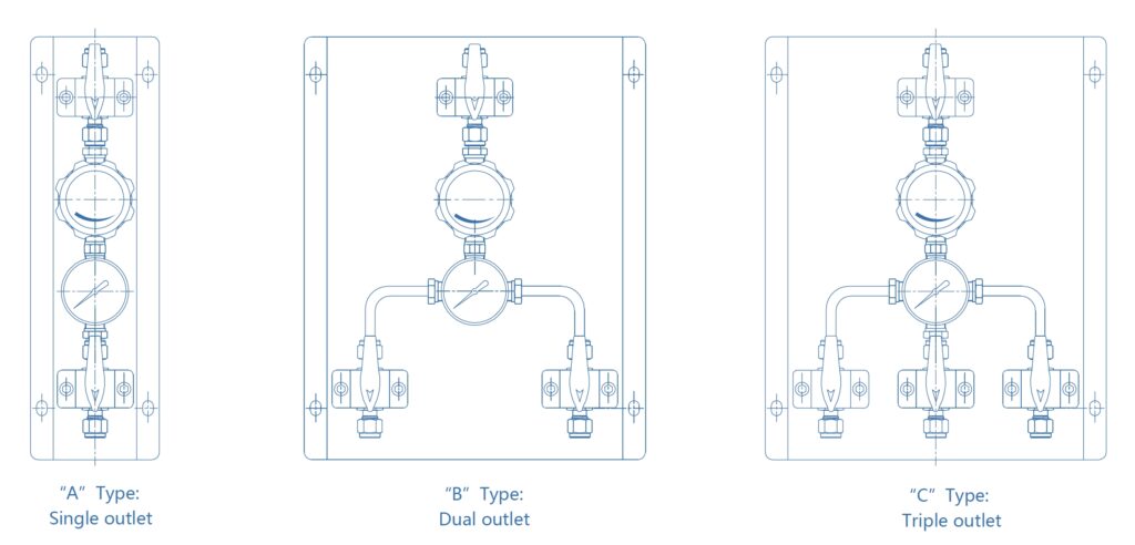 手动双侧减压供气大流量阀组控制面板 带吹扫排空 高纯氧气氮气氢气甲烷乙炔特气减压阀组汇流排