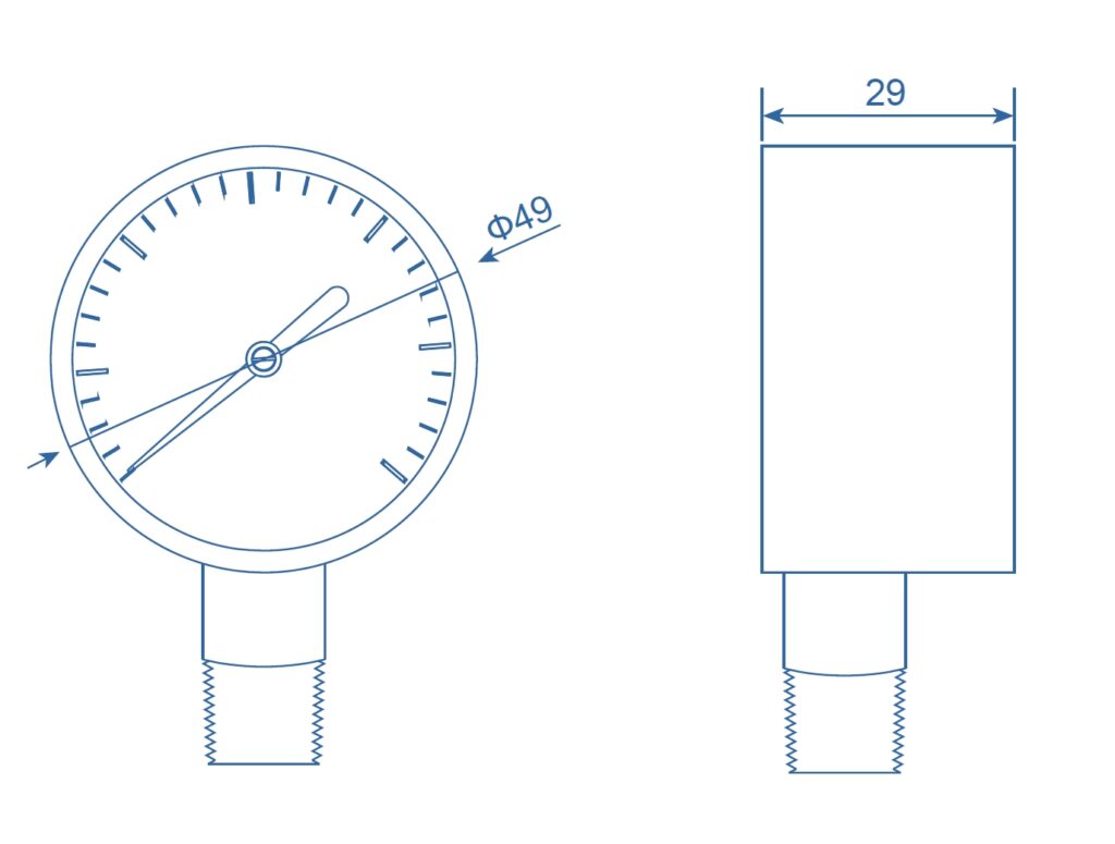 • 压力表专为测量与结构材料兼容的压缩气体的一般和实验室应用而设计。